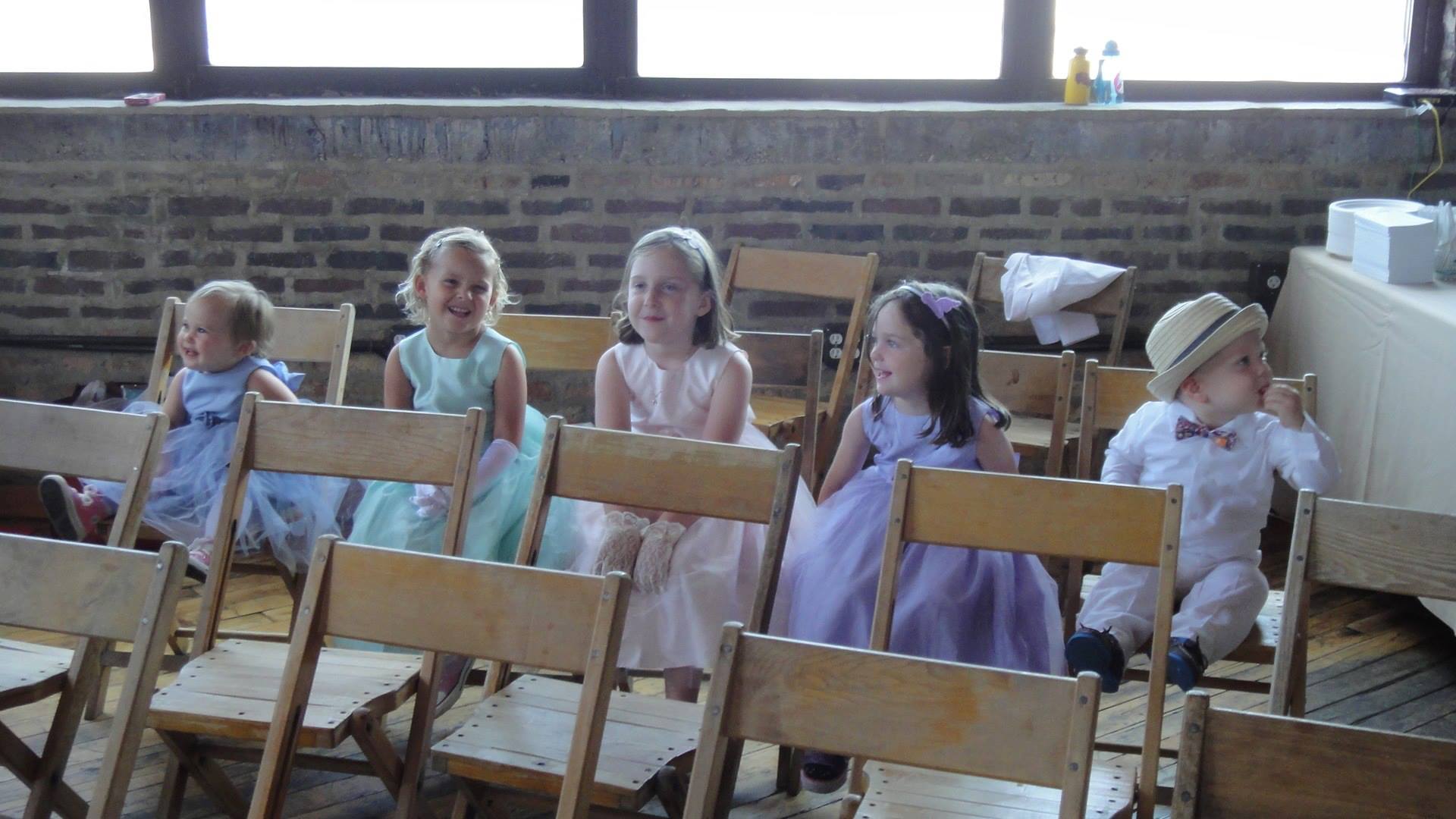 My kids were attendants in their first wedding two years ago. At 5, 3 and 1.5 they wore the fanciest clothes of their lives and walked down the aisle with their cousins, throwing dinosaur stickers instead of flower petals. Never once did it occur to them to ask why there were two brides.